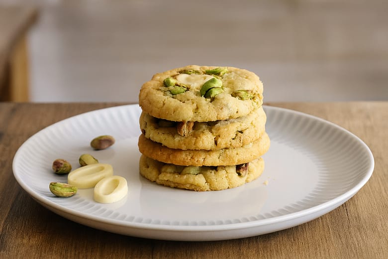 Cookies de Pistacho con Chocolate Blanco y Kadaif Crocante